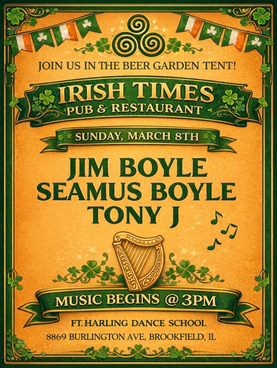 Get ready for the ultimate St. Patrick’s celebration at Irish Times Pub & Restaurant! Join us March 13–15 and March 17th, 2026 for 4 days of Irish spirit featuring live music, Irish dancers, traditional pipers, hearty corned beef, green beer, and our heated beer tent. ☘️ Celebrate with us for unforgettable food, drinks, and nonstop entertainment!