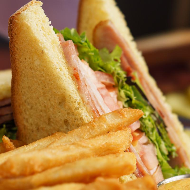 A triple decked sandwich with smoked turkey, crispy bacon, mixed greens, tomato, pickles, mayo and avocado on Texas toast. $16